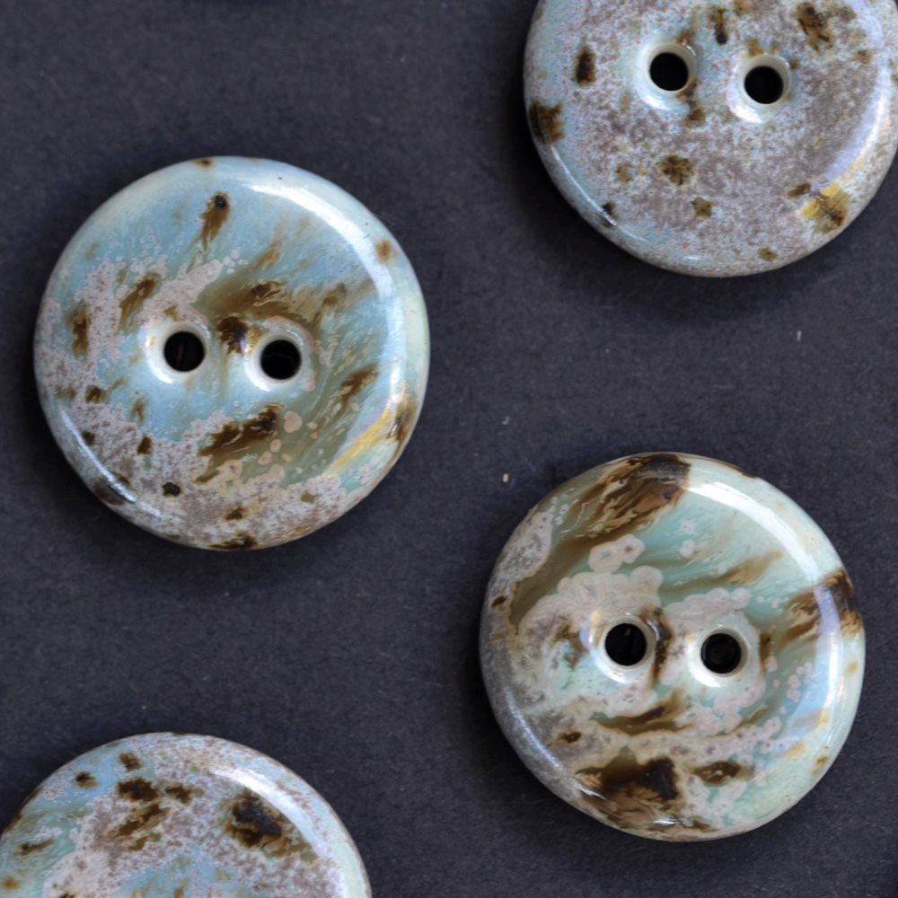 Schnell sammelte sich einiges an und ich begann, Kinderjacken und Westen zum Verkauf zu nähen. Auf der Suche nach Ideen stiess ich im Internet auf Keramikknöpfe und liess mich wohl ein wenig mitreissen 🙂 Heute sind es nur noch Knöpfe – keine Jacken oder Stoffe mehr.