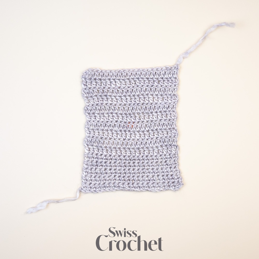 Die gezeigte Maschenprobe wurde in der Waschmaschine gewaschen (Wollprogramm bei 30°C) und mit Dampf gebügelt.