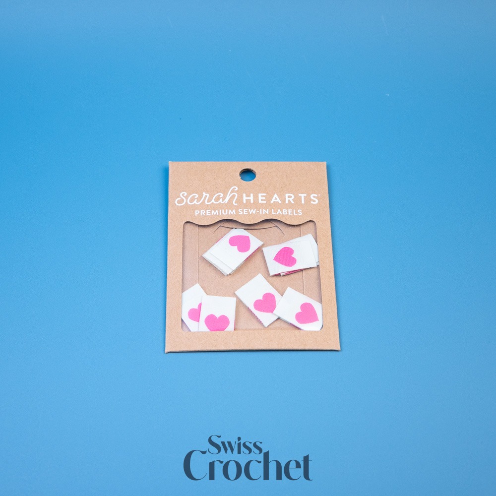 Verleihe deinen handgemachten Projekten den letzten Schliff mit diesen gewebten Labels von Sarah Hearts. Sie sind dafür gedacht, auf deine Häkelprojekte aufgenäht zu werden und verleihen Kleidungsstücken, Accessoires und Geschenken Persönlichkeit sowie ein professionelles Detail.
