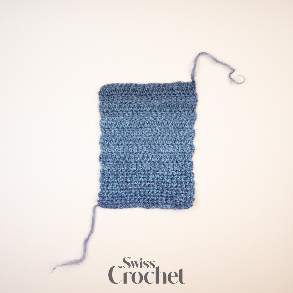 Die abgebildete Maschenprobe wurde in der Maschine gewaschen (Wollprogramm bei 30 °C) und dampfgebügelt.