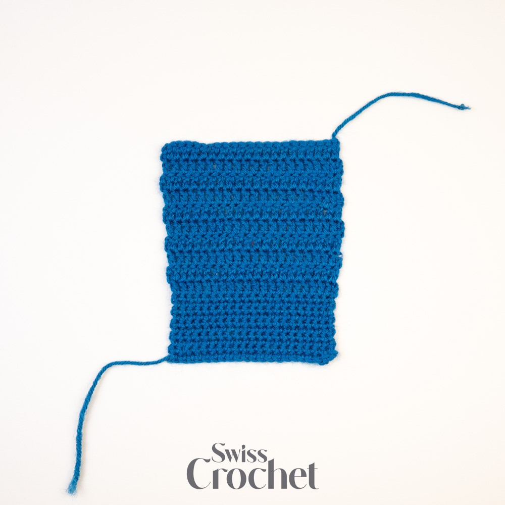 | Échantillon - bride - 10 cm | 24 m x 14 rangs (crochet 2.5mm) |