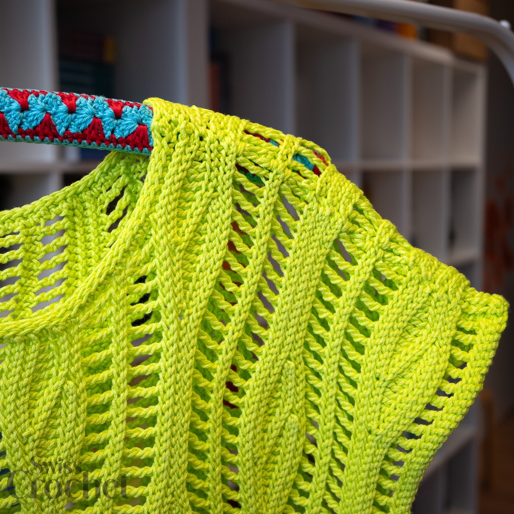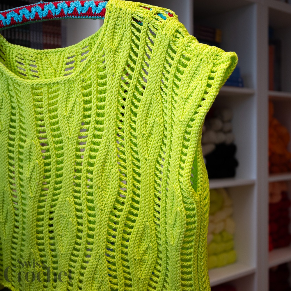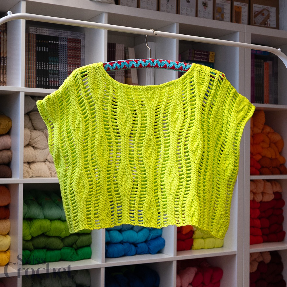 Il Flow Top è un capo estivo all’uncinetto moderno e leggero che si muove con te. Si lavora lateralmente. Il dietro e il davanti vengono lavorati separatamente, poi si cuciono le cuciture delle spalle e dei lati. Infine, si realizza la rifinitura dello scollo. Sono incluse le istruzioni per la versione cropped (mostrata) e per la lunghezza regolare.