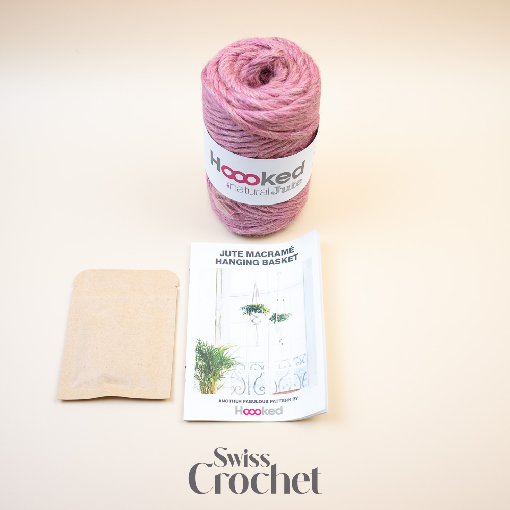 Hoooked – Cestino sospeso – Juta rosa – Kit macramè
