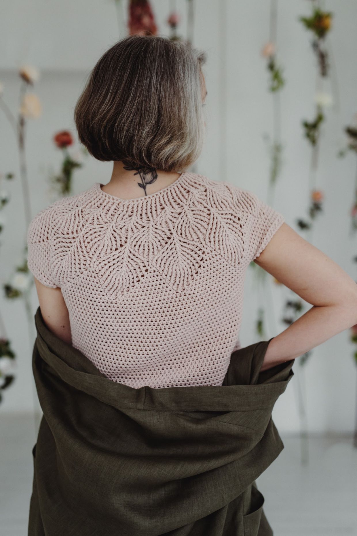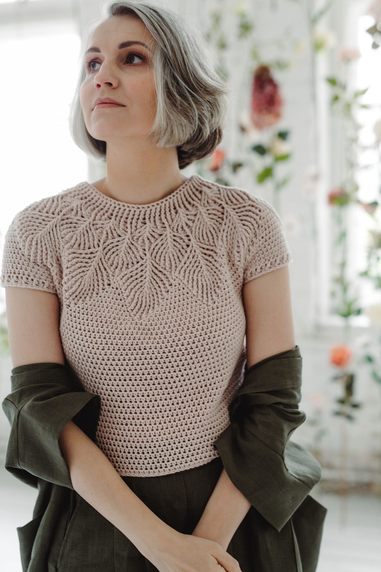 Experience with making crocheted garments and blocking a crochet item according to fibre type.