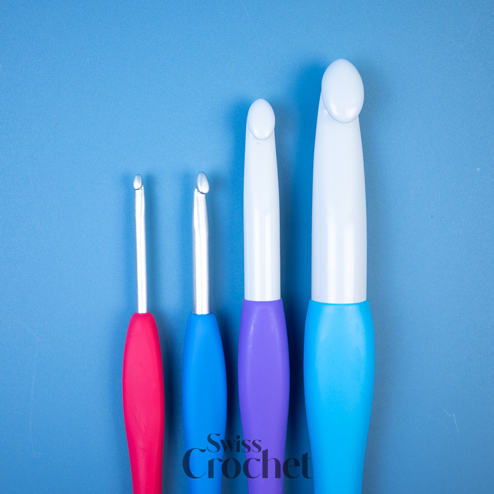 The Clover Amour Crochet Hook is a high-quality taperedA tapered hook has a rounded head, a neck that is narrower than the shaft, and a long shaft—especially compared to other types of hooks. hook with a well-rounded head ensuring smooth and precise stitching. Its soft, ergonomic handle features an anatomical thumb rest for enhanced comfort, reducing hand fatigue during long crochet sessions.