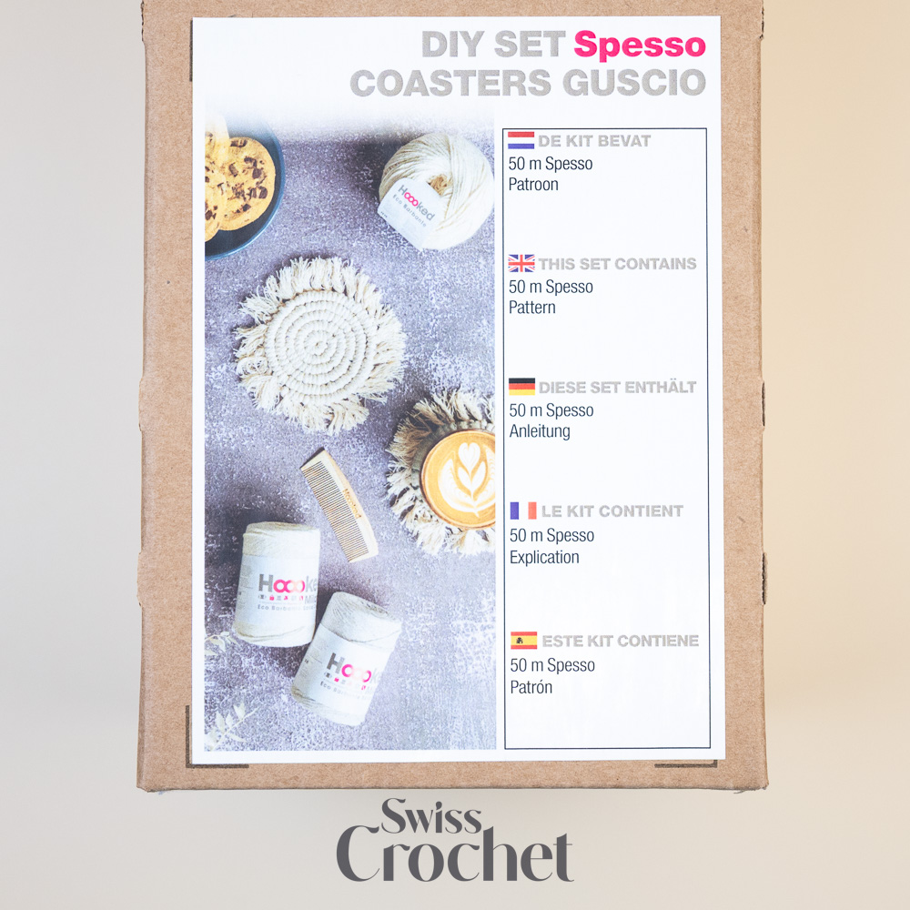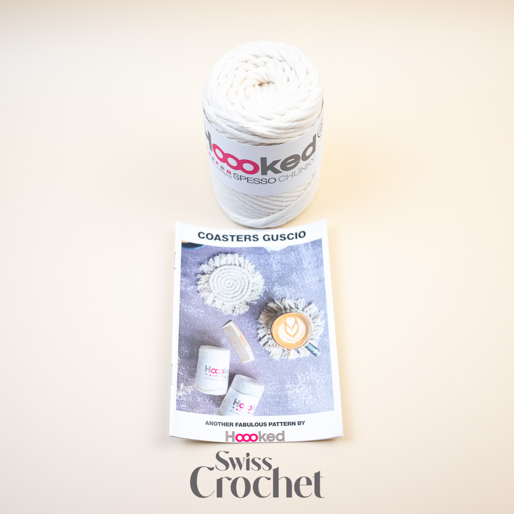 Create a set of elegant, handmade coasters with the Guscio Macramé Kit by Hoooked. Featuring a soft spiral design with playful fringed edges, these coasters add a natural, boho touch to your table. A relaxing and rewarding macramé project that’s both decorative and practical.
