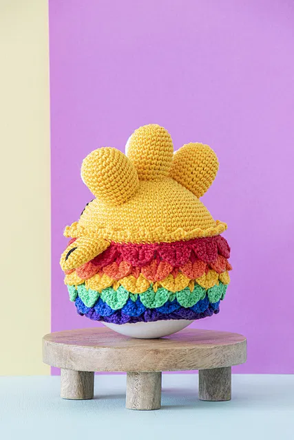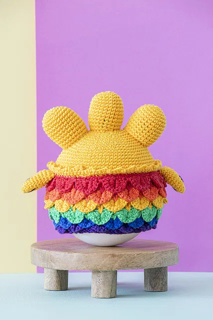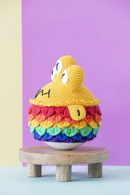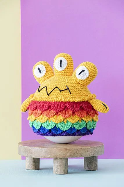 Kaleido is the ultimate rainbow monster, complete with three curious eyes! This playful amigurumi is crocheted using a vibrant combination of our Catona yarns, featuring eye-catching scales on the lower half and a lively wobble that adds an extra layer of joy. Perfect for a fun nursery or to brighten up any room!