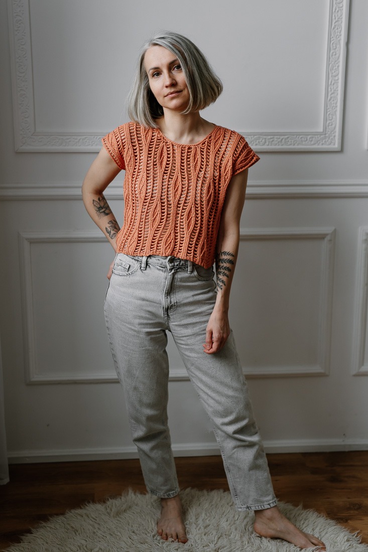 21 sts x 13 rows = 4” / 10 cm measured over rows 1-13 on gauge swatch