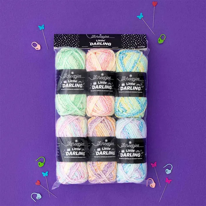 These themed Little Darling Colour Packs are curated in collaboration with Anoek of Nooks Hooks, whose expressive, character-led style is reflected in each colourway. Every soft, huggable ball features playful speckled sections that gradually transition into gentle, painterly stripes as you crochet — no yarn changes required.