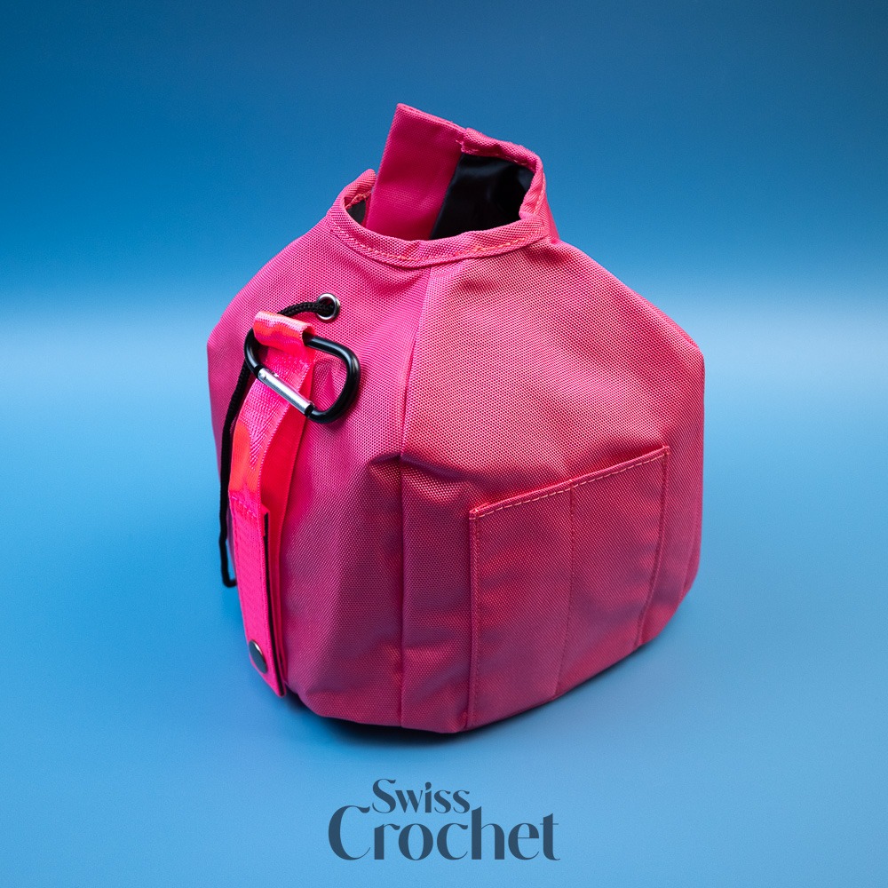 The yarn bowl pouch is a versatile companion for crocheting on the go. With several internal compartments, it keeps your supplies organized while also functioning as a yarn bowl, allowing your yarn to unwind smoothly. A zipper closure provides easy access, and the included carabiner lets you attach the pouch to a belt or another bag. It can also be worn over the shoulder for added convenience.